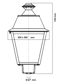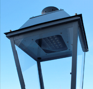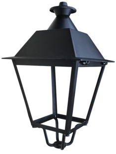 Luminaria tipo farol con 4 caras y 3 tipos de materiales de fabricación y dos acabados de forma: