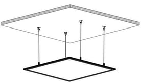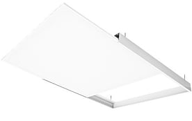 Luminaria plana empotrable o para suspender ideal para oficinas, locales comerciales, hogares, hoteles, colegios y hospitales.